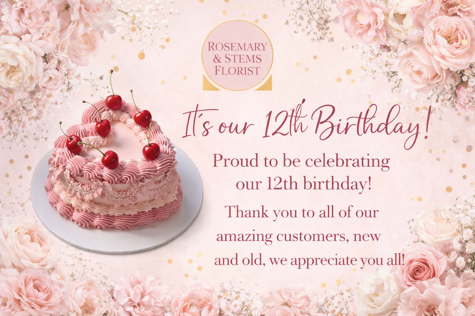 Beautiful fresh flowers and always service with a smile from Amy! If you like your flowers to have a personal touch this is the florist to use, I would highly recommend Rosemary & Stems to anyone looking for great priced quality flowers.