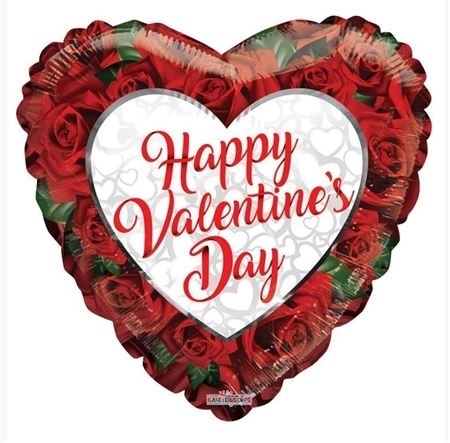 XL 36" helium filled 'happy valentines day' heart balloon.
