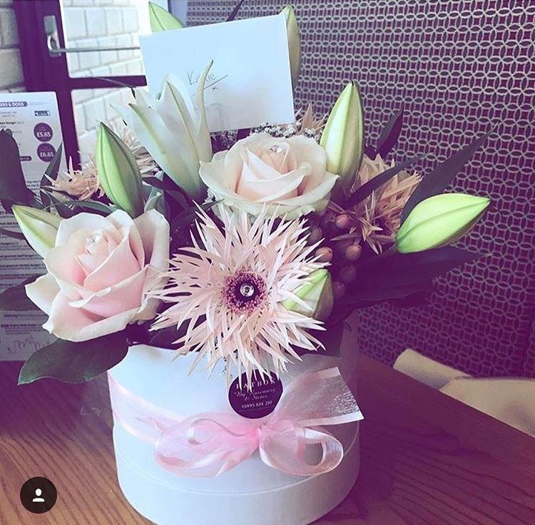 Stunning colection of fresh seasonal flowers, expertly arranged into one of our ever popular hatboxes.